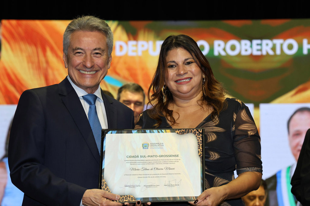 Com proposição do Deputado Estadual CEL Davi, Rodrigo Sacuno recebeu o título de cidadão Sul-Mato-Grossense e a 1ª dama Naiza, a comenda do Mérito Legislativo. Já o Deputado Roberto Hashioka concedeu a Vice Prefeita Telma Minari, também o titulo de cidadã do nosso Estado.